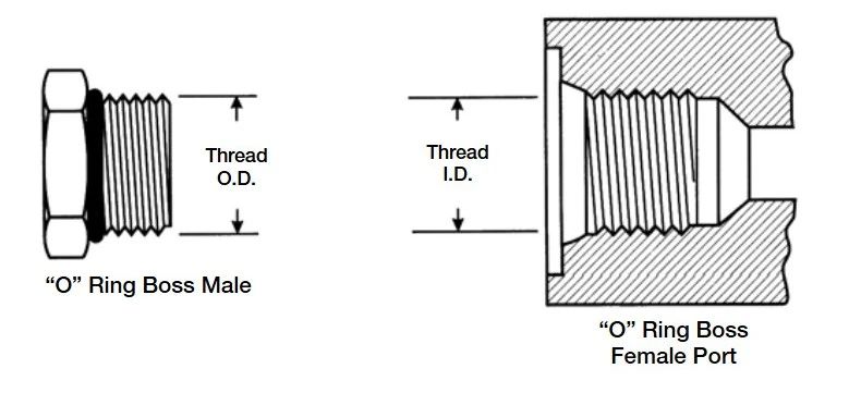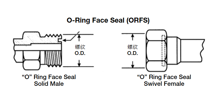 外螺紋接頭有直螺紋和O形圈。內螺紋接頭有直螺紋和密封面。密封是由外螺紋的O形圈和內螺紋的密封面來實現的,螺紋實現機械連接。