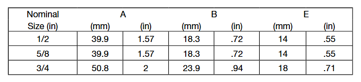 通常會把尺寸簡寫為以16為分母的分子數,如-04表示4/16或1 /4” 英寸。
