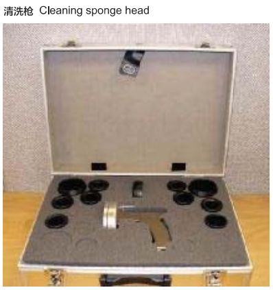 靠壓縮空氣推動高速運動的不同密度、不同材料的海綿清潔頭通過管路而去除管路內表面的污物。使用時只要將槍體連接到壓縮空氣氣源上(壓縮機或壓縮空氣瓶),氣動管路清潔系統就能工作,可以在幾秒鐘之內將管子內部清洗干凈。氣動槍所需壓縮空氣:工作壓力為6-10bar的空壓機或壓縮空氣瓶,流量為250-400升/分鐘。