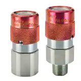H 系列快換陰接頭,承壓(液壓)可達10,000 psi,能夠符合液壓工具制造協會 (HTMA) 標準要求,并且能與FH系列陽接頭配合連接。派克 FH 系列是高壓無溢流型快換,因此不能與低壓快換接頭配合連接。紅色表面能夠使得這些快換接頭容易作為高壓快換 (10,000 psi) 作為識別。陰接頭有套筒鎖功能,減少意外斷開的情況。快換陰接頭與陽接頭目前可供尺寸僅 3/8"