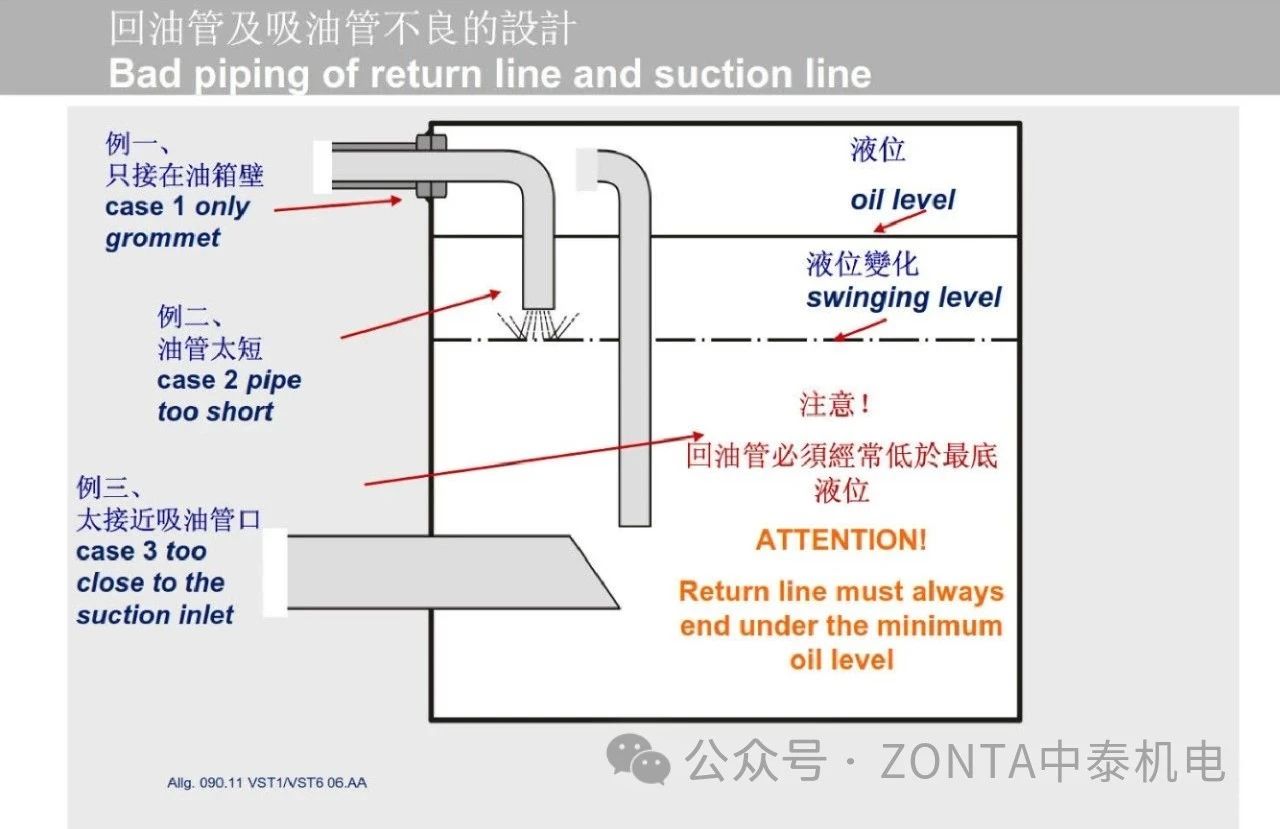 油箱內吸油管與回油管安裝的一些小注意